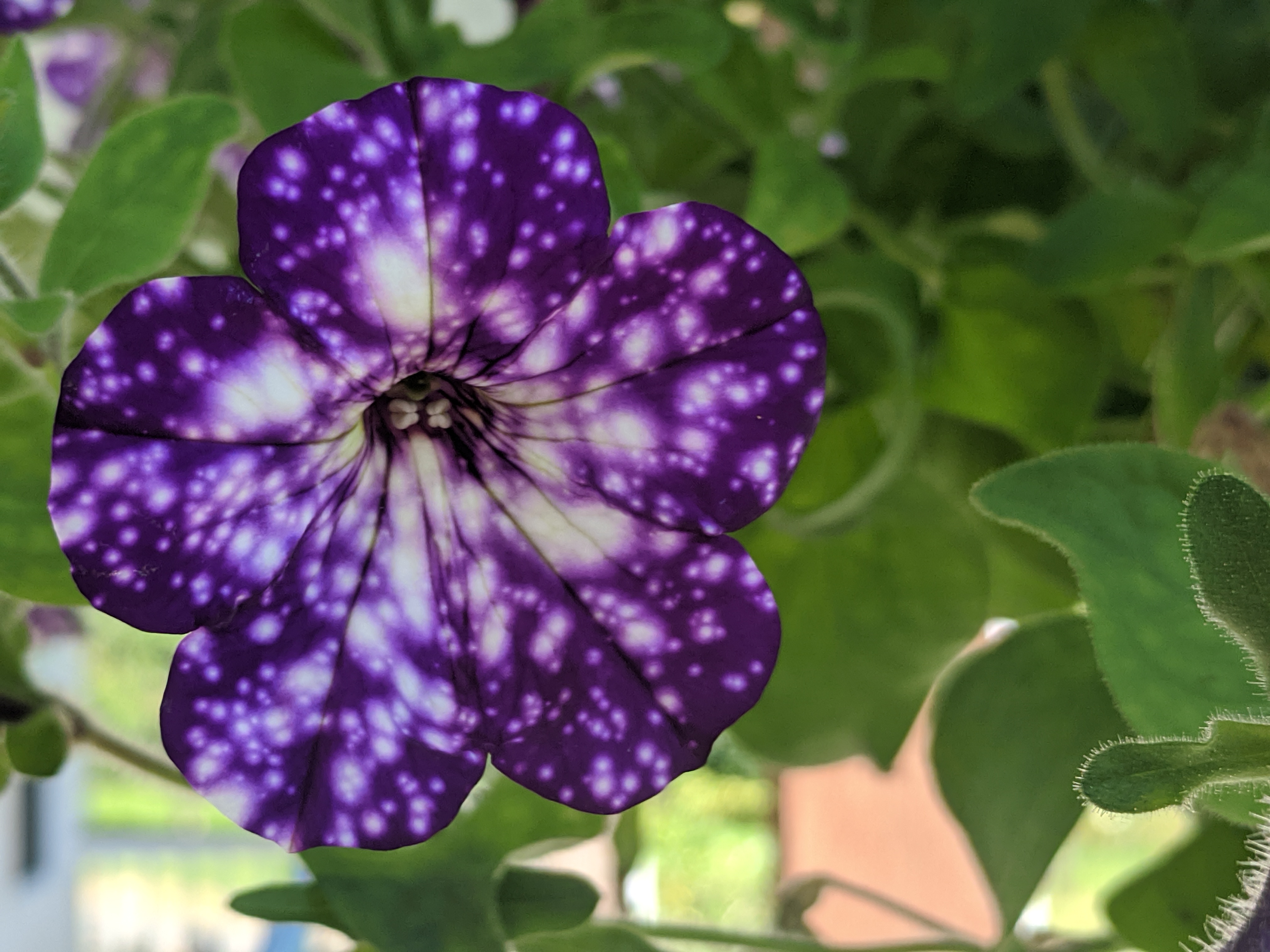 Isn’t genetics wonderful? These starry night petunias are the result of some fancy plant breeding. I don’t think think they grow true from seed, so far I have not found any seed available. But for a flower like this, its worth while to buy the plant. I have these in hanging baskets on the front porch. They are a simple blossom that seems to hold a galaxy in each bloom.